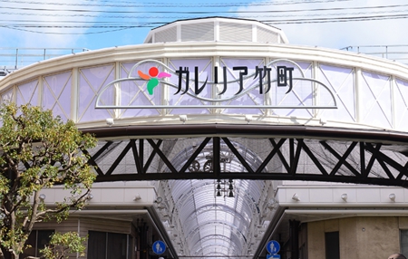 ●6年、未来の新商業都市創造を目指して、新アーケード・カラー舗装完成。「ヒューマン・サンクチュアリー=人間のための楽園」をコンセプトにした開閉式ドームアーケード「ガレリア竹町」誕生。四季の移り変わり・光・風・が体感できる、商業空間を目指す。